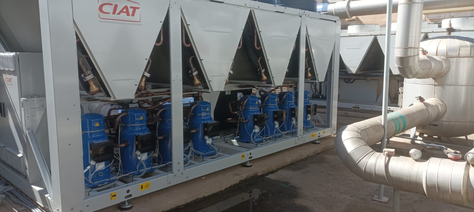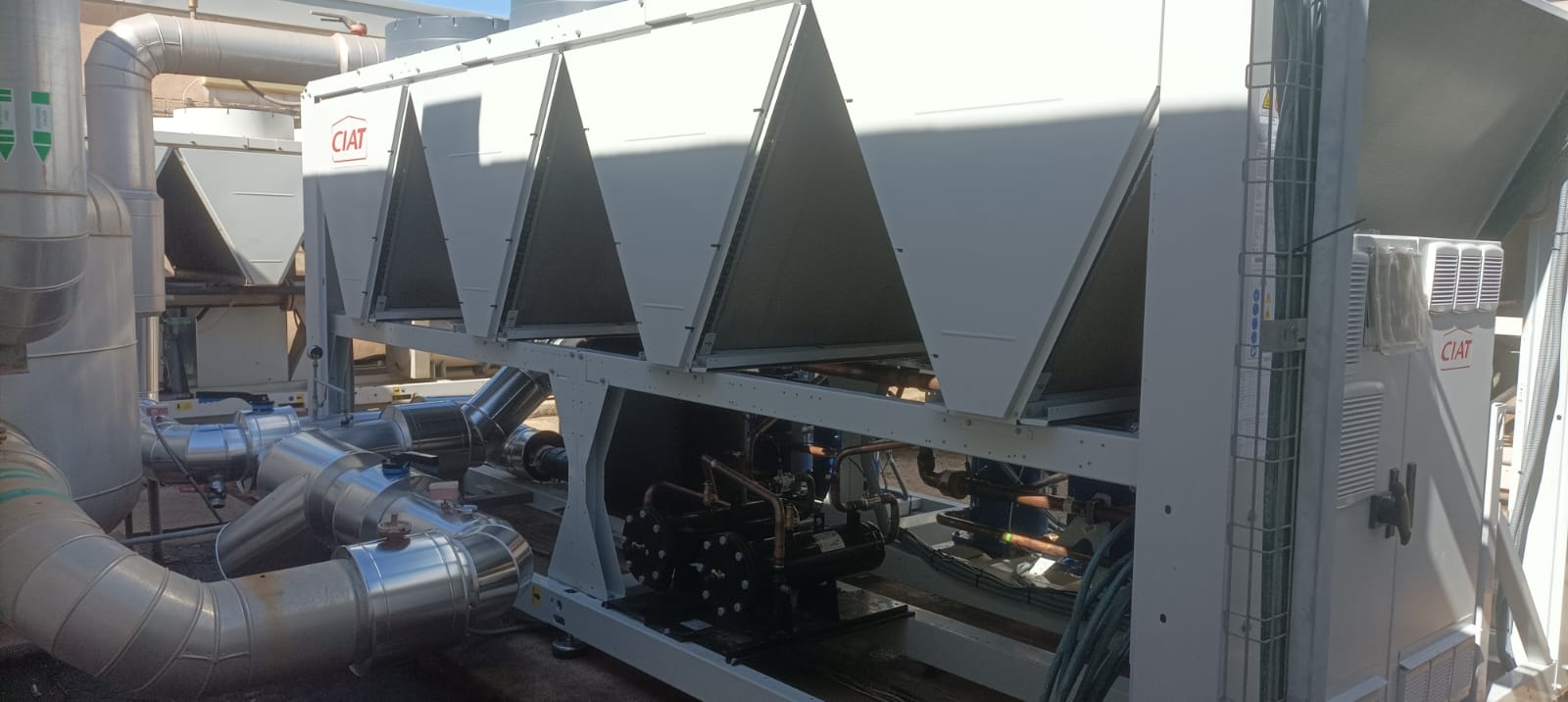 La nueva planta enfriadora cuenta con una potencia frigorífica de 487 kW y 523 kW potencia calorífica.